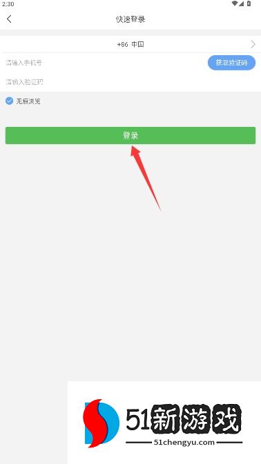 2、选择手机登录选项,跳转至快速登录页面。