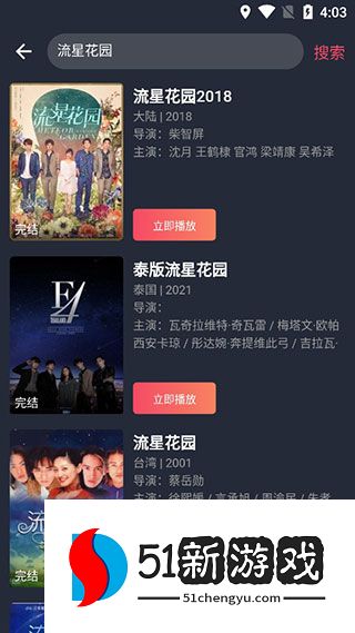 3、通过点击搜索框,你也可以搜索你想看的电视剧或电影的名字,比如前段时间非常流行的流星花园,还有我和我的太阳、难忘之夜等。