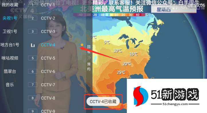 4、点击左上角我的收藏就可以看到收藏的电视频道了。