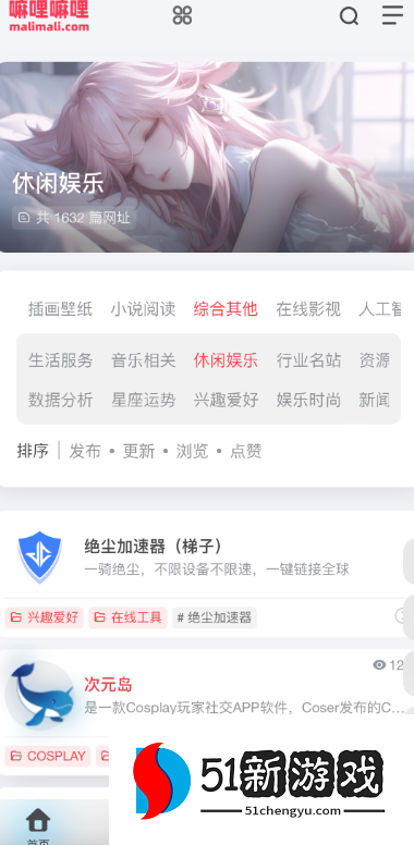 2、主页有 5 个主要部分可供选择:动画排名、最新更新、新闻、后续历史和成员。