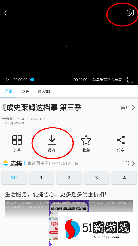 4、点击缓存,可以把视频资源离线到手机本地,这样没网您也可以直接看。
