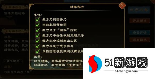 封禅告功成功后,原战略的“颁布诏书”按钮会变为“宣告胜利”,点击宣告胜利按钮即可结算本局游戏。