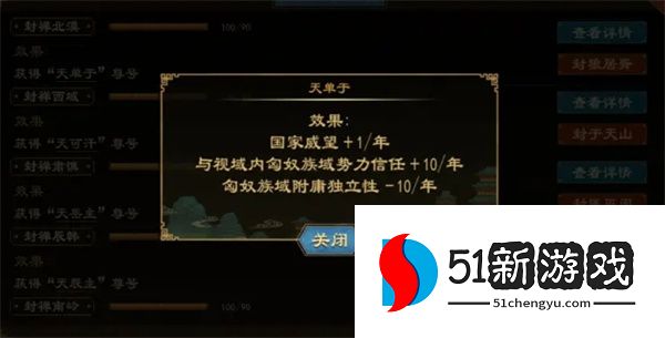 点击尊号下划线,可预览封禅战略成功后获得的对应尊号效果。