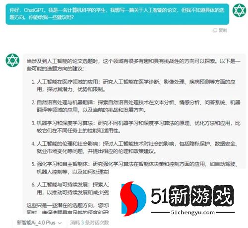 ChatGPT大模型功能十分强大,它可以协助用户完成论文创作,比如:论文选题和参考文献,它会根据用户的提问来作出详细回答,下面小编带来具体指令介绍,感兴趣的朋友们来看一看吧。
