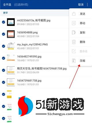 2.用户勾选好文件后,点到右上角的三个点,然后选择压缩;