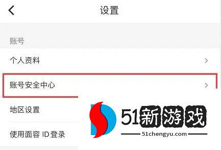 3、然后设置界面中找到【账号安全中心】,再点击进入。