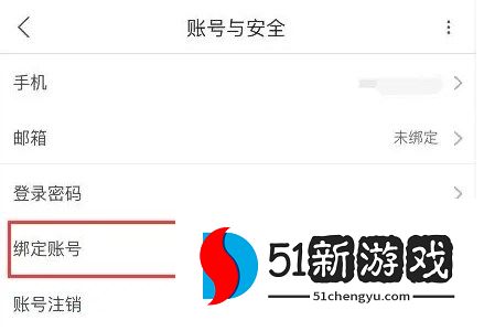 4、在账号与安全里找到【绑定帐号】选项,点击前往设置。