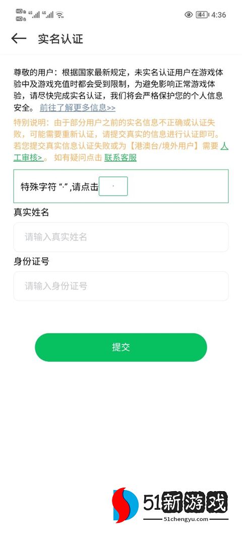3.按照要求填写详细的认证信息,包括个人姓名和身份证号码,如果已成年,认证成功之后就不会有各种限制了。