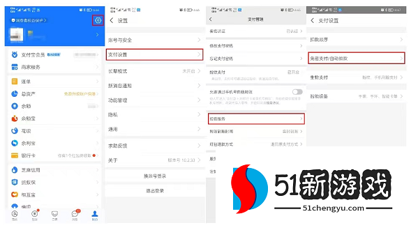 3.支付宝:前往设置页面,选择支付设置,选择免密支付/自动扣费,最后选择酷狗音乐解约。