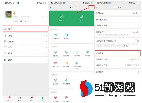 2.微信:下图所示,前往支付页面,点击右上角三个小点,选择扣费服务,点击酷狗音乐关闭服务;