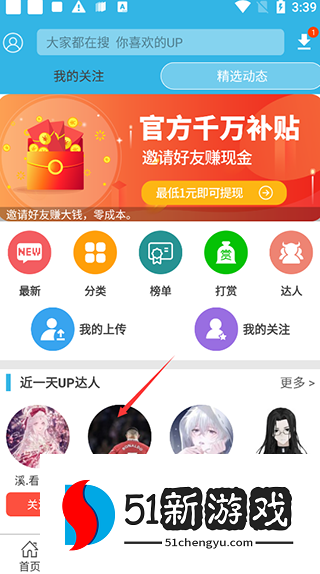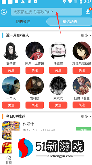 4、若想要找到指定游戏或者软件的资源,还是点击【UP】,在上方搜索框输入应用名称;