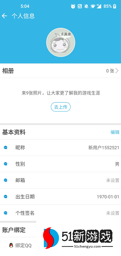 3、登录第三方账号之后即可查看个人信息,包括:头像、昵称、邮箱、性别等等;