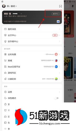 2.在弹出的列表中点击【会员中心】,前往会员页面;