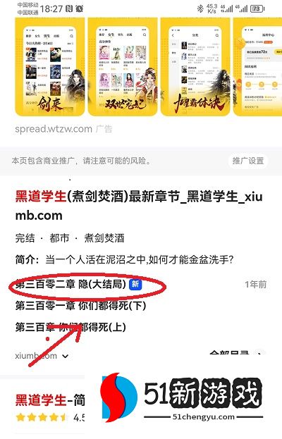 3、选择小说前往阅读,下图所示;