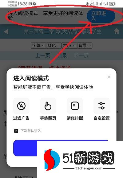4、在页面顶部能够看到系统提示,点击【立即进入】开启阅读模式;