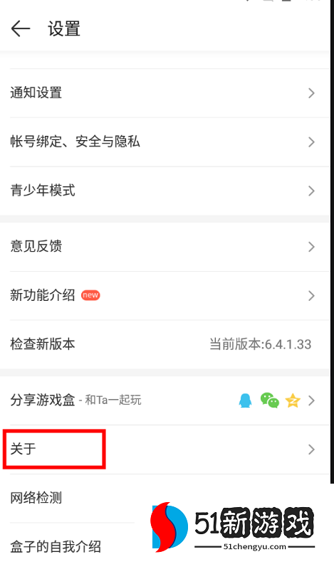2、在设置界面列表中,选择“关于”;