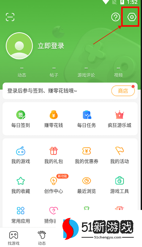 1、进入4399游戏盒子APP,点击首页下方“我”,接着选择右上角设置按钮;