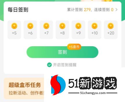 登录盒子即可领取不同数量的盒币,连续签到则能够获得更多的盒币。
