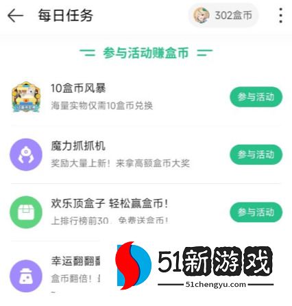 平台里面经常有各种活动,用户参加活动并完成任务之后,即可获得盒币奖励。