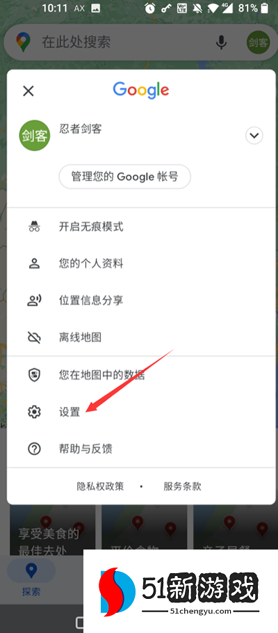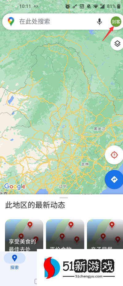 1、打开谷歌地图APP,在搜索框旁边点击个人头像;