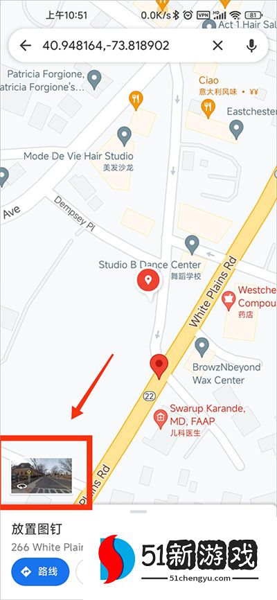 4、选择3D功能开启之后,再点击想要查看的位置,能够看到左下角有一个小窗口,点击窗口放大