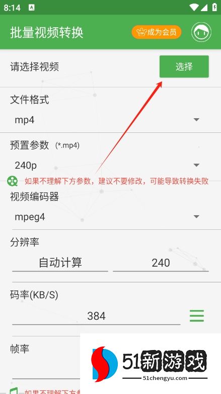3、选择多个视频,选择预置视频格式,选择预置参数,更新音视频参数,转换。