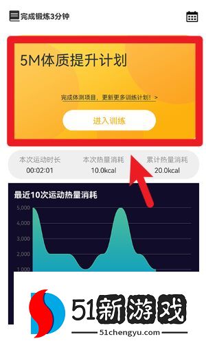 3、点击进入训练模块,根据5M体质计划开始锻炼,还能实时查看热量消耗和运动曲线。