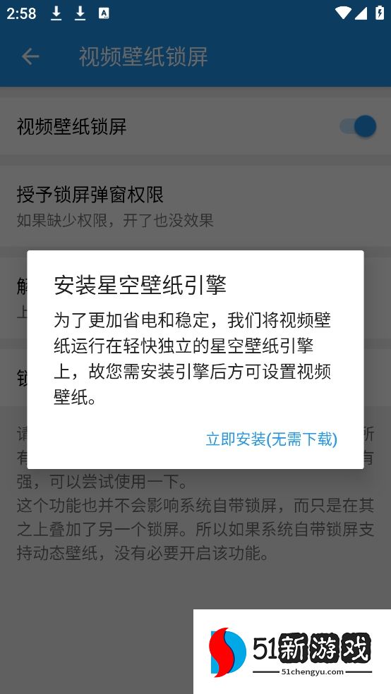 5、点击视频壁纸锁屏,安卓星空壁纸引擎后即可设置锁屏壁纸
