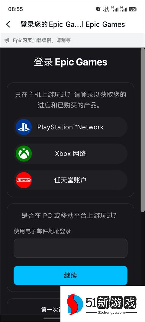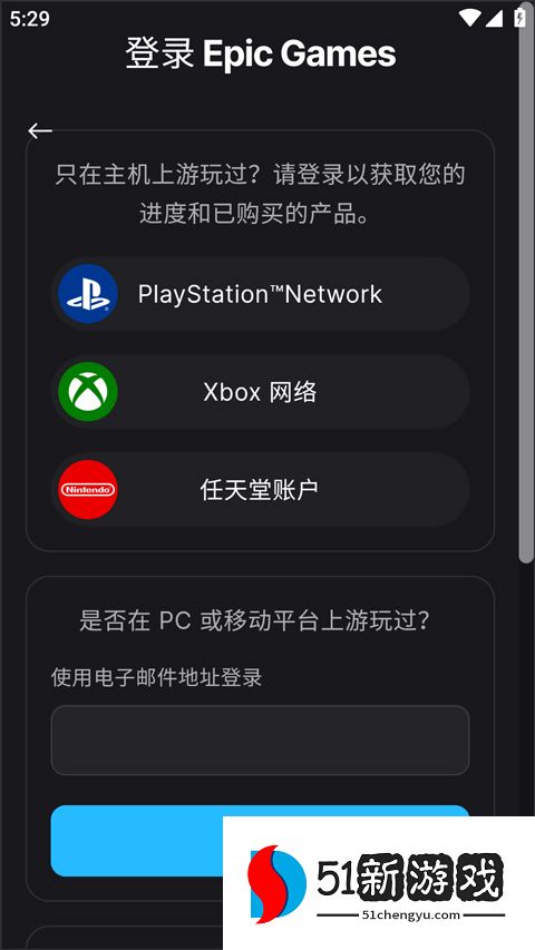 2、选择登录方式(邮箱/用户名等),输入Epic账号密码完成绑定。