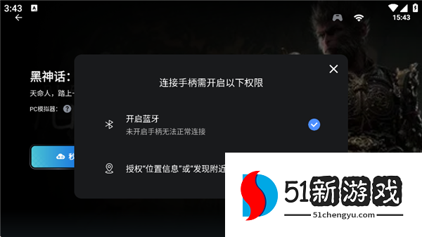 3、玩家若要连接手柄则要开启蓝牙和授权位置信息。