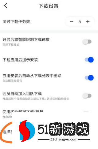 5、在下载设置界面,找到并且点击“选择存储路径”选项。