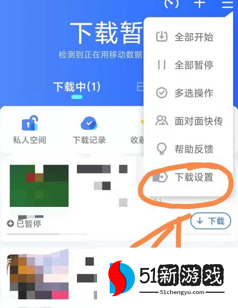 4、在下拉菜单中,选择最后一项“下载设置”选项。
