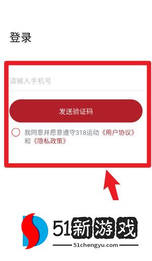 1、开通318运动后,用户需要先输入手机号,查看协议条款。完成短信验证后才能进入平台使用功能。