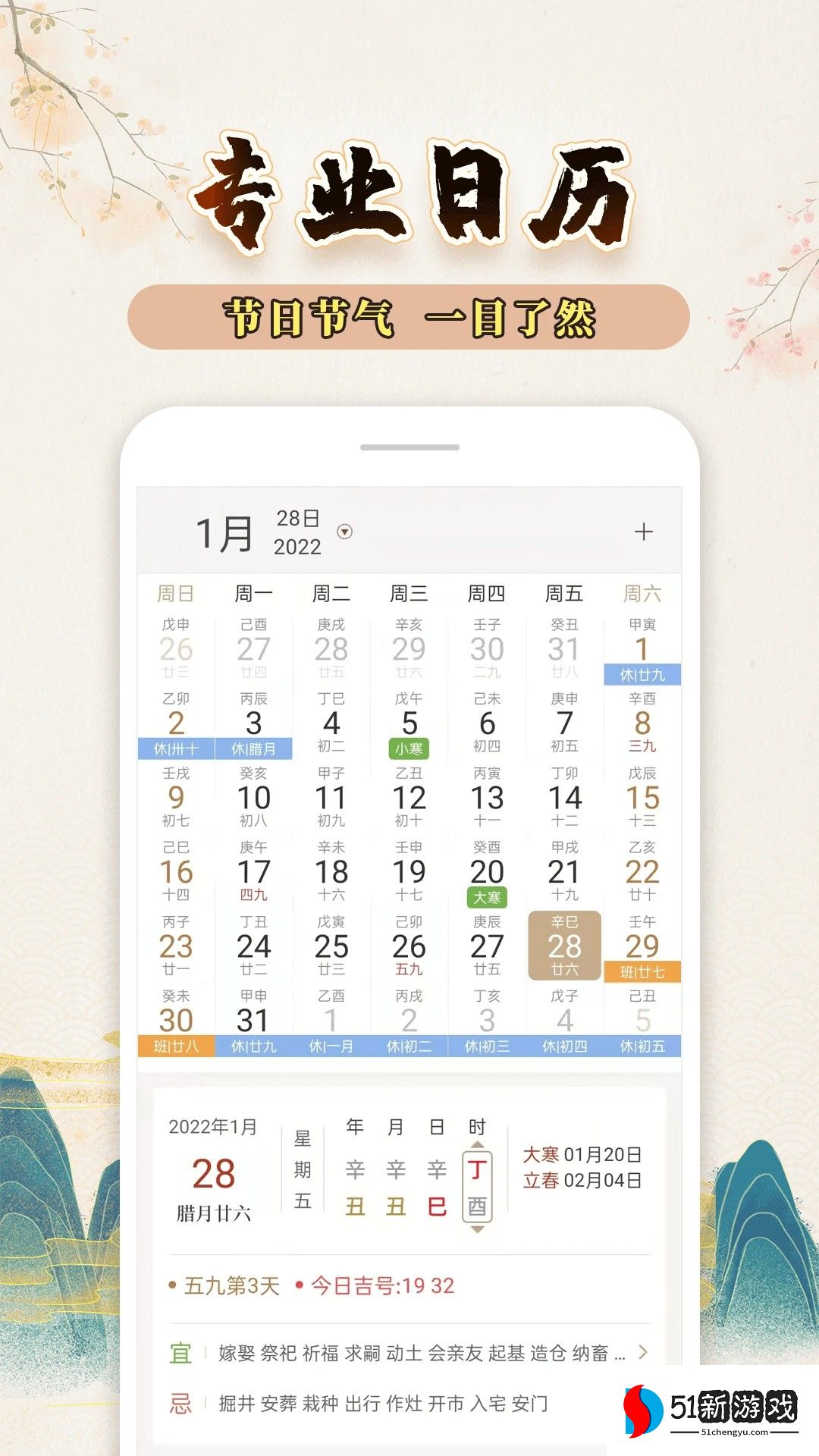 2、生活助手:提供实用的日期查询和年历吉凶功能,帮助用户合理安排日常生活。