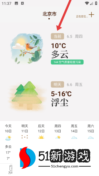 3. 天气页面上的当前天气和空气质量直观,并提供明天和未来几天的详细天气预报。点击天气选项卡切换到这里,获得准确的气象信息。结合日历和年历,为旅游和活动规划提供全面的参考。