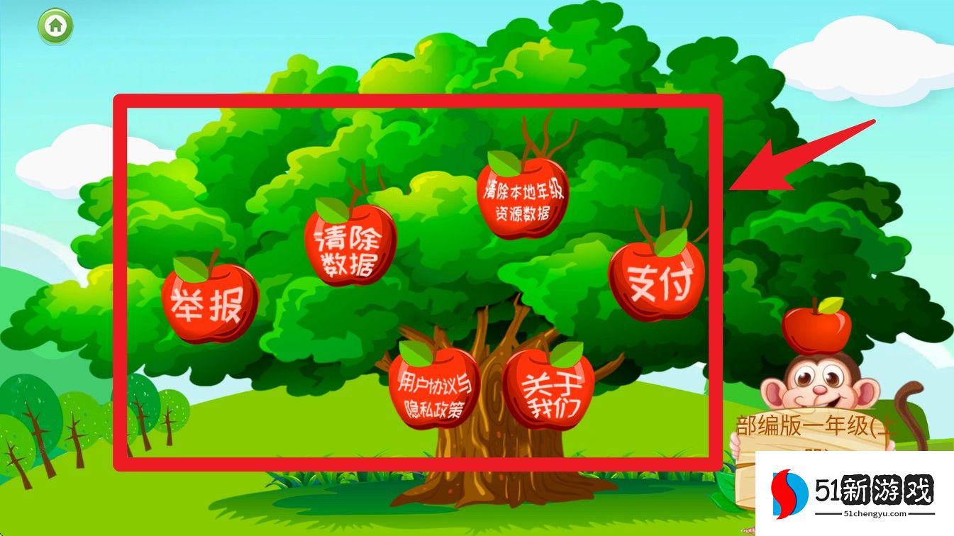5. 设置页以卡通树呈现功能项,点击清除数据、关于我们等图标管理应用或查看信息。