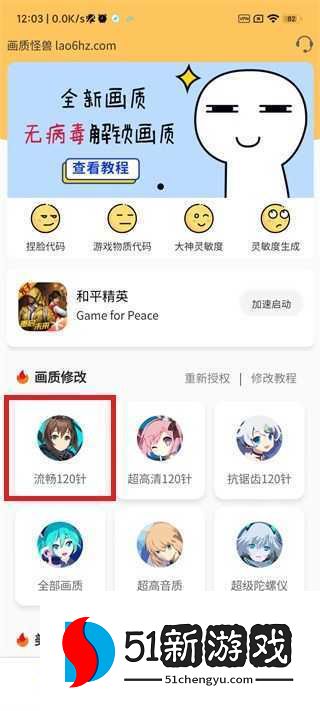 2、点击“流畅120帧”,然后即可使用。