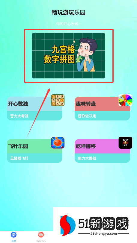 2、接着呢,进入软件首页可以浏览各种乐园游戏,比如从九宫拼图或数独开始体验,点击图标就能直接进入游戏界面啦。