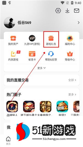 3、在个人中心中找到游戏礼包。