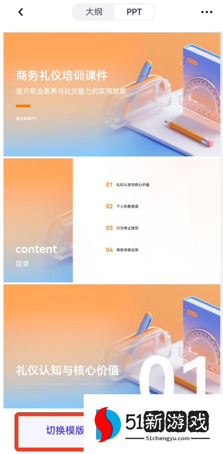 4、等待一段时间后,就会生成一个包含所有内容的PPT。可以直接修改或导出模板。