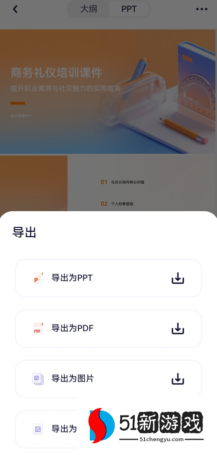 5、选择所需的导出格式并单击右侧的下载按钮。