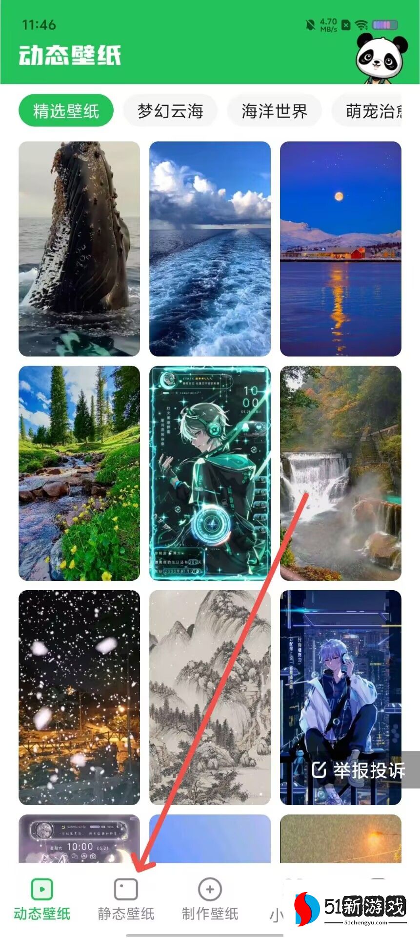 1、点击界面底部的“静态壁纸”。