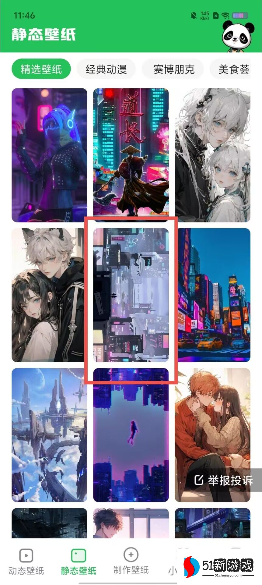 2、向下滚动找到你喜欢的静态壁纸。