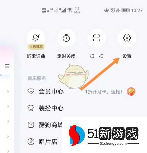 1、打开手机上的【酷狗音乐】,点击进入到【设置】。