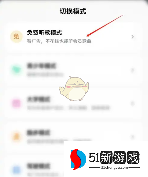2、接着选择“免费听歌模式”,点击进入