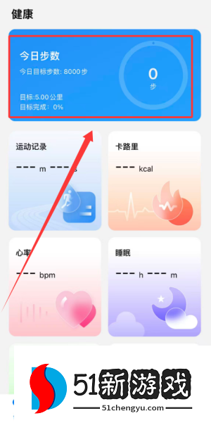 2、健康部分实时显示一天的步行步数,帮助用户掌握每日运动量数据。