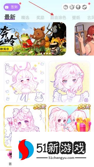 1、进入软件首页,点击“自由涂色”,就会进入涂色页面。