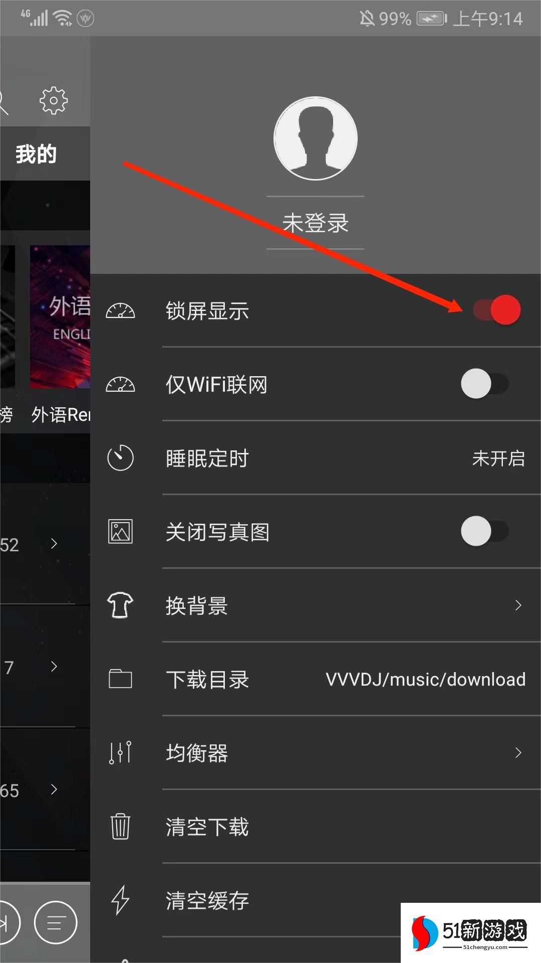 清风dj音乐网app怎么开启锁屏显示?