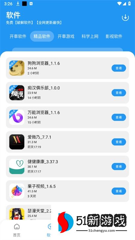 2、进入首页后在软件页面可以看到各种精品软件资源。