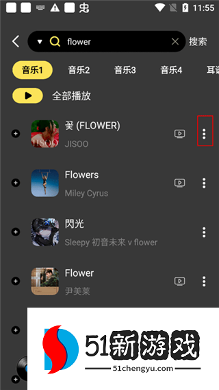 2、点击歌曲右侧的三个小点。